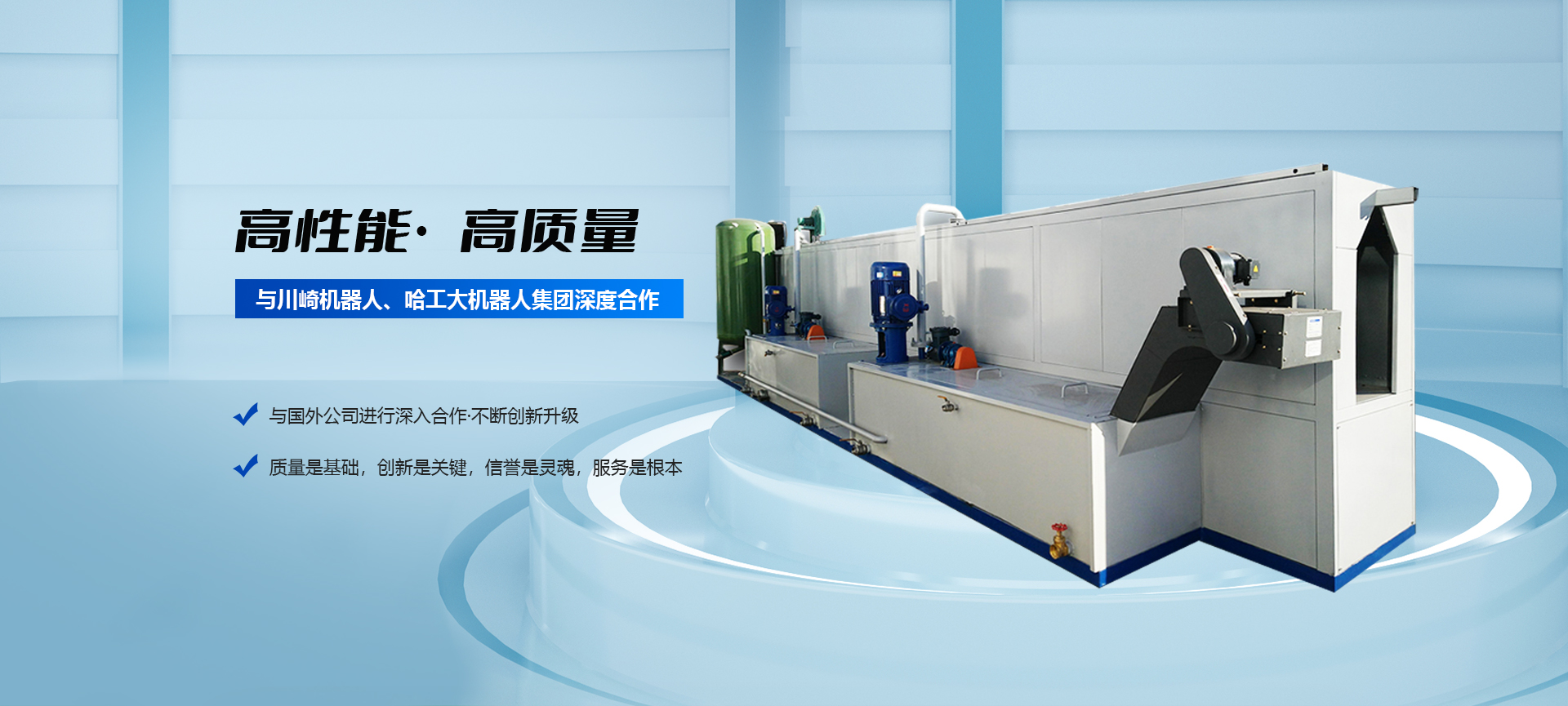 公司与川崎机器人,日本岩田、哈工大机器人集团深度合作,在自动化清洗、包装、机器人精准喷涂、机器人自动机床上下件、码垛集成等方面积累了先进、丰富的经验