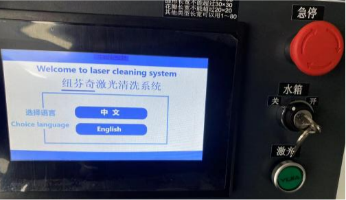 第8步:調好參數點擊屏幕上“激光開啟”,取出槍頭對準要清洗的工件按下槍頭的開關;即可出光。(注意?。?!槍頭禁止對人和易燃易爆物品)